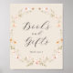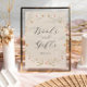 Este sinal de 'livros e presentes' do na moda & chá de fraldas elegante | poster apresenta flores silvestres, pintadas à mão, lindíssimas, feitas com aquarelas, organizadas como belíssimas curvas e elegantes planos de caligrafia. Localize itens correspondentes na Coleção de Chás de fraldas de flor selvagem do Boho.