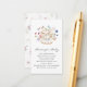 Deixe o seu florescimento especial com livros de flores silvestres para o cartão de bebê! Este belo design apresenta florais de aquarela pintados à mão em tons de azul roxo profundo, poeirento, e cor-de-rosa pincelada com verde sábio. Quer você esteja hospedando uma festa de jardim ou uma reunião acolhedora e íntima, esta placa de chá de fraldas de tendências trará um toque especial de charme para o seu evento. Encontre produtos coordenadores na coleção de Chás do Partido Tea Watercolor Wildflower.