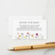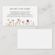 Um cartão de inserção de solicitação de livro para o chá de fraldas. Apresentando flores silvestres com poema: "UMA PEQUENA SOLICITAÇÃO, ESPERAMOS NÃO MUITO DURO POR FAVOR TRAZER UM LIVRO EM VEZ DE UM CARTÃO QUE ELES CHERARÃO O LIVRO, BEM ADORADO OU MARCA NOVO, ASSINE O DENTRO COM UMA MENSAGEM DE VOCÊ!"