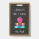 Outro crachá de passagem da biblioteca com quadro de letras falso com 3 livros e uma maçã rosa em cima deles. Personalize com um nome. Encontre o sinal de porta da sala de aula e cartão postal de volta às aulas correspondentes.