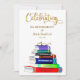 Diversão e convite de festas único de aposentadoria com uma pilha de livros de autoajuda para quando alguém se aposenta. Veja a mesma imagem/similar para parabéns na aposentadoria também.