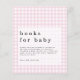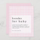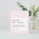 Um alternativo de 4,5 pol x 5,6 pol com preço inferior. O SATIN FINISH 80 lb É UM STOCK DE PAPEL MAIS FINO (ideal para gabinetes), ou Disponível em um STOCK SEMI GLOSS 110 lb CARD (ideal para convites). Os envelopes são um extra opcional e são ligeiramente maiores que o tamanho da placa. Gingham Livros Rosa para Recinto de Bebê. Garota Bebê. O cabeçalho é grande em na moda em minúsculas, com os detalhes na parte inferior de uma camada de opacidade sobreposta ao fundo de gingham. Personalize facilmente o texto para seus próprios detalhes.
