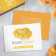 Bebê branco pintado à mão no florescimento de manteiga quente amarela e alaranjada livros de chá de fraldas para cartão de bebê. Perfeito para você solicitar livros e fazer o presente especial de solicitação e dentro de mensagem dos seus convidados. Pintor de aquarela de mão branca de um bebê fofo com um arco aninhado em uma flor de estilo marigold amarela e design por Sarah Trett exclusivamente para www.mylittleeden.com no Zazzle.