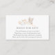 Um cartão de inserção de solicitação de livro para o chá de fraldas. Apresentando um carregando de cegonha-d'água embrulhado em um cobertor branco com poema: "UMA PEQUENA SOLICITAÇÃO, ESPERAMOS NÃO MUITO DURO POR FAVOR TRAZER UM LIVRO EM VEZ DE UM CARTÃO QUE ELES CHERARÃO O LIVRO, BEM AMADO OU MARCA NOVO POR FAVOR ASSINEM O DENTRO COM UMA MENSAGEM DE VOCÊ!"