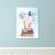 Livros Roxos Azuis e Flores Canvas Wall Art