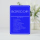 Outra lei fundamental de atração do cartão de emoção de JessicaAmber... mensagem-me sobre encomendas personalizadas! Este cartão azul roxo ajudará a subir a Escala de Orientação Emocional, popularizada por Abraão-Hicks. Dá o título da emoção - Boredom - e também lista os processos para elevar sua vibração, que se adequam a esse nível de emoção. Você pode editar este texto conforme necessário. Edite um cartão, adicione ao carrinho e edite novamente para fazer um baralho de cartas inspiradoras. No verso está uma mandala floral com o número do sentimento de acordo com o EGS. A mandala é uma obra de arte original de JessicaAmber. Esta ferramenta vai melhorar o seu foco espiritual, e faz um excelente presente para a sua irmã ou namorada. ・ ・ ・ Criado em 13 de dezembro de 2023 ・ ・ ・ Para cartões correspondentes, visite minha loja Zazzle.com/In_The_Vortex