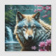 Cinza Wolf no rio com flores cor-de-rosa AI Arte gerada por minx267