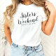 A camisa perfeita para celebrar o fim de semana das suas irmãs. Esteja você comemorando um aniversário, planejando uma mini reunião, festa de solteira ou apenas saindo com suas amigas, esta camisa vai colocar o palco para o melhor fim de semana/viagem de sempre. Personalize adicionando o local e a data de sua fuga.