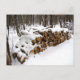 Cena de inverno de uma pilha de madeira coberta de neve na floresta