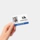 Crachá de funcionário de escritório com design minimalista limpo em preto, azul e branco. Adicione uma foto do funcionário junto com o nome, pronomes pessoais e profissão. Personalize ainda mais com o logotipo da sua empresa.