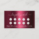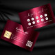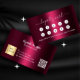 Um fundo de gradação burgundy, texto branco na frente: Adicione desconto. Voltar: Personalize e adicione seu nome, título, número de telefone, email, endereço de site, logotipo de empresa, código qr ao seu site ou conta de mídia social.