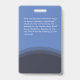 Este moderno e elegante crachá de identificação de funcionários apresenta um design elegante de bloco de cor curvo em azul vibrante e cinza com destaques brancos. O design exibe o nome do funcionário em letras garrafais, a fotografia do funcionário em um espaço reservado circular especial e o cargo/posição do funcionário. O crachá de identificação oferece a opção de incluir o logotipo e o nome da empresa na parte superior. Outras informações pessoais, como ID, telefone e e-mail, podem ser inseridas na parte inferior. Informações importantes adicionais relacionadas ao funcionário podem ser especificadas no verso. O design apresenta um conceito inovador com curvas e cores elegantes. Você também pode adicionar texto adicional no verso do cartão para a tag line ou slogan da empresa. Este design está disponível em várias combinações de cores.