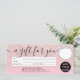 Um presente para você, Brilhos modernos de brilho rosa em gradiente rosa pastel certificado de presente simples e sofisticado, adicione seu logotipo