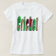 Críquete, T-shirt, em destaque é um logotipo de críquete feito a partir de uma bola de críquete e caules.