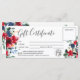 Buquê de aquarela floral vermelho simples, moderno e minimalista certificado de presente preto e branco, adicione seu logotipo