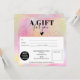 Padrão de mármore mbre do arco-íris moderno e certificado de presente quadrado simples branco, adicione seu logotipo, com um coração de ouro rosa. Um vale perfeito de aniversário ou de presente de Natal.