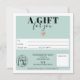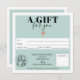 Certificado de presente simples e quadrado azul verde verde moderno, adicione seu logo, com um coração de ouro rosa. Um vale perfeito de aniversário ou de presente de Natal.