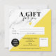 Padrão moderno de mármore preto e branco chic e certificado simples de presente quadrado de bloco de cor amarela editável, adicione seu logotipo, com coração. Um vale perfeito de aniversário ou de presente de Natal.