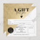 Padrão moderno de mármore preto e branco e certificado simples de presente quadrado de bloco de folha de ouro, adicione seu logotipo, com coração de ouro. Um vale perfeito de aniversário ou de presente de Natal.