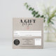 Certificado simples de presente quadrado, simples, de cor bege russa, adicione seu logotipo, com um coração de ouro rosa. Um vale perfeito de aniversário ou de presente de Natal.