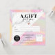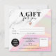Padrão moderno de mármore branco e preto e arco-íris e certificado simples de presente quadrado holográfico de blocos coloridos do arco-íris, adicione seu logotipo, com um coração de ouro rosa. Um vale perfeito de aniversário ou de presente de Natal.