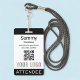 Personalize nosso crachá de evento profissional de participante com seu logotipo, nome de participante e outro texto personalizado. É plástico pvc e disponível com um jardim, clipe ou um rolo retrátil. Projetado em preto e outras cores com uma design moderna minimalista pela MISOOK. Todas as cores são personalizáveis. Você pode, opcionalmente, adicionar conteúdo ao verso. Personalize facilmente o título do participante (convidado VIP, visitante, auto-falante etc.). Nenhuma quantidade mínima de ordem e nenhuma taxa de configuração.