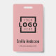 Crachá de nome de funcionário personalizado facilmente com o logotipo da sua empresa e código QR ou código de barras. Disponível com diferentes cores de fundo e anexos. Sem quantidade mínima de pedido.