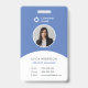 Este moderno crachá de identificação de funcionários apresenta um design elegante em bloco de cores em azul e branco clássico. O design exibe o nome do funcionário em letras negrito, a fotografia do funcionário em um espaço reservado circular recortado especial com uma moldura branca fina e o cargo/título do funcionário. O crachá de identificação oferece uma opção para o logotipo e o nome da empresa no topo. Outras informações pessoais, como ID, telefone e e-mail, podem ser inseridas na parte inferior. Informações importantes adicionais relacionadas ao funcionário podem ser especificadas no verso. O design apresenta um design inovador com curvas e cores elegantes. Você também pode adicionar texto adicional no verso do cartão para a tag line ou slogan da empresa.