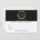 Coordena-se com o logotipo de salão de bronzeamento por palmas do Ouro em preto até 1201AM. Um logotipo simples e moderno das palmas de palma é silenciado dentro de um formato hexágono contendo seu nome ou nome comercial neste modelo de modelo de certificado de presente personalizável. Colocada sobre um fundo preto para uma estética glamourosa. Perfeito para salões de bronzeamento, cuidados de pele tropical e/ou proteção solar, salões de cera, boutiques e muito mais. Arte e design © 1201AM CREATIVE