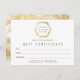 Coordena-se com o logotipo de salão de bronzeamento para palmas do Ouro em Modelo de cartão de negócios branco até 1201AM. Um logotipo simples e moderno das palmas de palma é silenciado dentro de um formato hexágono contendo seu nome ou nome comercial neste modelo de modelo de certificado de presente personalizável. Colocado sobre um fundo branco para uma estética limpa e luxuosa. Perfeito para salões de bronzeamento, cuidados de pele tropical e/ou proteção solar, salões de cera, boutiques e muito mais. Arte e design © 1201AM CREATIVE