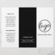 Brochura tripartida profissional e moderna com um design simples, mas elegante, a preto e branco. O painel frontal tem seu logotipo e nome comercial. O painel traseiro tem suas informações de contato e o painel da dobra interna tem dois cabeçalhos e caixas de texto. Use a modelo para adicionar informações sobre sua empresa nos painéis externos e uma lista de preços/menu de serviço no painel do meio. DESIGN DICA: Você pode alterar o texto e o plano de fundo para qualquer cor que desejar, clicando no botão "personalizar".