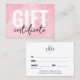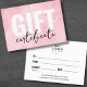 Cartão de visita do Certificado de Presente Comercial do Logotipo de Cana-de-Água Rosa. Adicione seu logotipo para torná-lo seu. Um certificado de presente simples e divertido para marcas corporativas, pequenas empresas ou indivíduos como artistas de maquiagem, estéticos, cabeleireiros e muito mais! Agora é uma coloração rosa, preta e branca, mas você pode trocar qualquer uma das cores para o que quiser usar! O padrão de aquarela branca ficará sobrecarregado sobre a cor que você escolher para o plano de fundo. Uma mistura de tipografia moderna e escrita para um olhar profissional, mas chique.