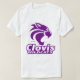 Camiseta do logotipo Clovis Wildcats com mascote de gato selvagem roxo e branco (apenas para camisas brancas ou pretas).