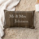 Faça a sua própria almofada de casal com os seus nomes e data de casamento em belas letras brancas em script sobre um fundo de madeira rústica escura. Elegante e sofisticada, é um ótimo presente para casamentos, aniversários ou Natal.
