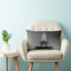 Uma almofada retangular com uma fotografia preto e branco da Volta Eiffel à deitar de sol