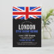 Um cartão de convite para o seu próximo evento temático britânico na bandeira do Reino Unido. Um item de excelente a ser usado para um evento de cozinha de comida de Londres ou churrasco de seleção de comida especial.