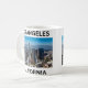 A design de caneca de café é sobre a cidade de Los Angeles no estado da Califórnia. Ele o torna ideal para café ou chá de manhã. Micro-ondas e máquina de lavar louça em segurança. Tenha cuidado ao remover a caneta do micro-ondas. Use um pote ou luva, conforme necessário, se estiver muito quente para tocar. Não faça micro-ondas com uma caneca vazia. Forte construção cerâmica. Atende aos requisitos de FDA para segurança de comida e bebidas.