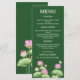 Create a serene and elegant tablescape with this lotus flower wedding menu card, featuring a beautifully styled lotus motif set against a deep green background. Symbolizing purity, harmony, and new beginnings, the lotus flower brings meaningful elegance to your wedding décor while maintaining a refined, modern look.