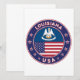 Crachá da Louisiana com bandeira da Louisiana e bandeira dos EUA com cores, forma arredondada. Emblema da Louisiana. Selo de Louisiana. Coleção dos Estados Unidos.
