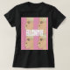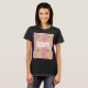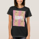 Uma imagem colorida de uma mulher loira sobre um fundo cor-de-rosa em uma camisa preta.