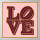 Este burgundy quadrado, ouro e poster cor-de-rosa apresenta uma representação luxuosa da palavra AMOR. As letras são letras arrojadas em ouro. A palavra LOVE está sobre um fundo cor-de-rosa bonito com uma borda de ouro.