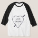 t-shirt clássica de duas tonalidades com capas de 3/4 comprimento com o logótipo dos tambores de amor