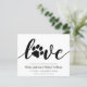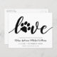 AMOR! Convide seus amigos e família para o seu casamento com este super fofo 'AMOR' com um casamento impresso de pata, salve os cartões de data. Estes cartões postais de convite para casamento de orçamento precisam ser enviados como cartões postais de tamanho excessivo, de modo que podem incorrer em despesas de correio, mas não precisam de um envelope ou etiqueta de endereço de retorno. Personalize com seus nomes, data e local do casamento. Este casamento com a pata, salvar o anúncio da data será um sucesso para a sua família e amigos. Perfeito para todos os amantes de cães, amantes de gatos e amantes de os animais. COPYRIGHT © 2020 Judy Burrows, Black Dog Art - Todos Os Direitos Reservados. Love Paw Print Weding Date Postcard