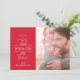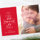 AMOR A JOY PEACE para o seu Cartão com fotos de Férias. Vermelho e branco. Lindo tipografia, tema de natal. Natal religioso. Um bonito padrão floral festivo brilhante ou sua própria foto no verso.