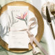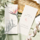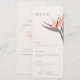 Inspirado pelo pássaro da flor do Paraíso e Ti leaf lei, este design tropical celebra a junção de dois corações que agora florescem como um só. Faça com que todos os detalhes da sua celebração de casamento tropical se sintam especiais e personalizados com este menu personalizável que inclui sua hashtag de casamento.