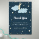 Cartões de agradecimentos azul de meia-noite bonito com uma noite estrelada e lua amarela atrás de algumas nuvens azuis. A ilustração é feita de forma que ela olha em três dimensões mas note que é apenas um efeito e que é na verdade um impressão. Todo o texto está em branco e pode ser personalizado. Ilustrada e projetada por Patricia Alvarez.