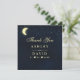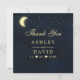 A Lua Celestial Estende Cartões de agradecimentos Azul De Casamento À Meia-Noite. Este design apresenta luzes estreladas brilhantes com uma lua crescente brilhando no céu noturno estrelado.