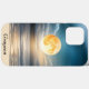 Uma grande lua amarela de cheio sobe sobre um oceano calmo numa noite clara. Paisagem bonita e serena para o seu telefone celular.