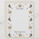 Adicione um estilo exclusivo e pessoal a artigos de papelaria concebidos por medida. Lua Cósmica e Estrelas Papel de carta Personalizado Preto e Dourado. Personalize com o nome, as iniciais, a mensagem, a citação ou qualquer outra coisa que desejar. Use a segunda linha para endereço, site ou qualquer outra informação - pode ser removida se desejar. A folha traseira corresponde ao tema da cor.