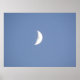 Esta bela impressão apresenta uma bela fotografia de uma lua crescente tirada à luz do dia. O belo céu azul desaparece ao fundo enquanto a maravilhosa lua branca capta a atenção enquanto ela se aproxima de um quarto da fase da lua.